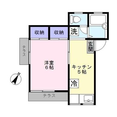 | 設備 | 収納スペース バス・トイレ別室 室内洗濯機置場 床下収納 ガスコンロ可 シャワー フローリング 都市ガス エアコン 駐輪場 テラス CATV トイレ | ||